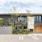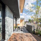 凛とした建築の直線に、しなやかな枝葉が描く曲線美。