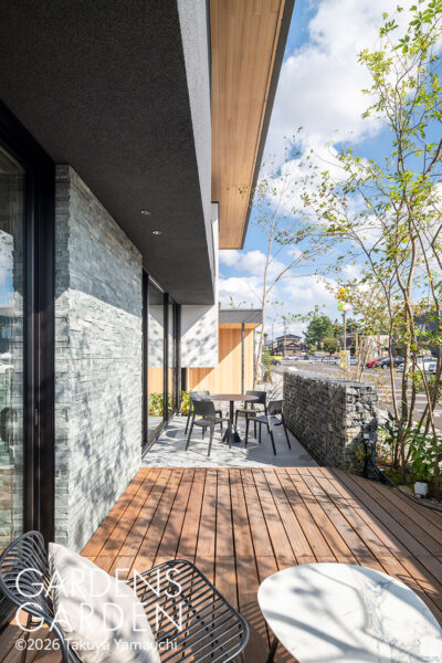 2種類のテラスでメリハリをつけた自然素材のガーデンスタイル。